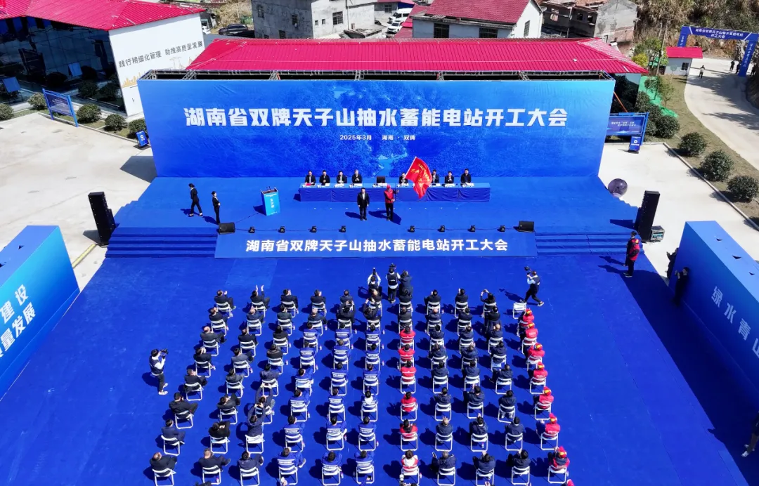3月18日,湖南双牌天子山抽水蓄能电站开工。该电站总装机容量140万千瓦,额定水头670米,是华中地区水头最高的抽水蓄能电站,首台机组预计2031年投运。