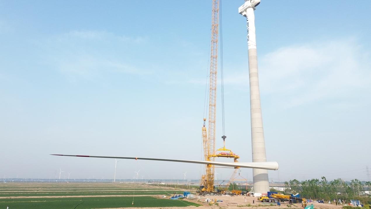 获悉,4月20日中午,随着天润大丰风电项目最后一支叶片在155米高空完美“转体”与轮毂精准对接,我国自主研发生产的首台16.2兆瓦陆上单机容量最大发电机组顺利吊装完成。